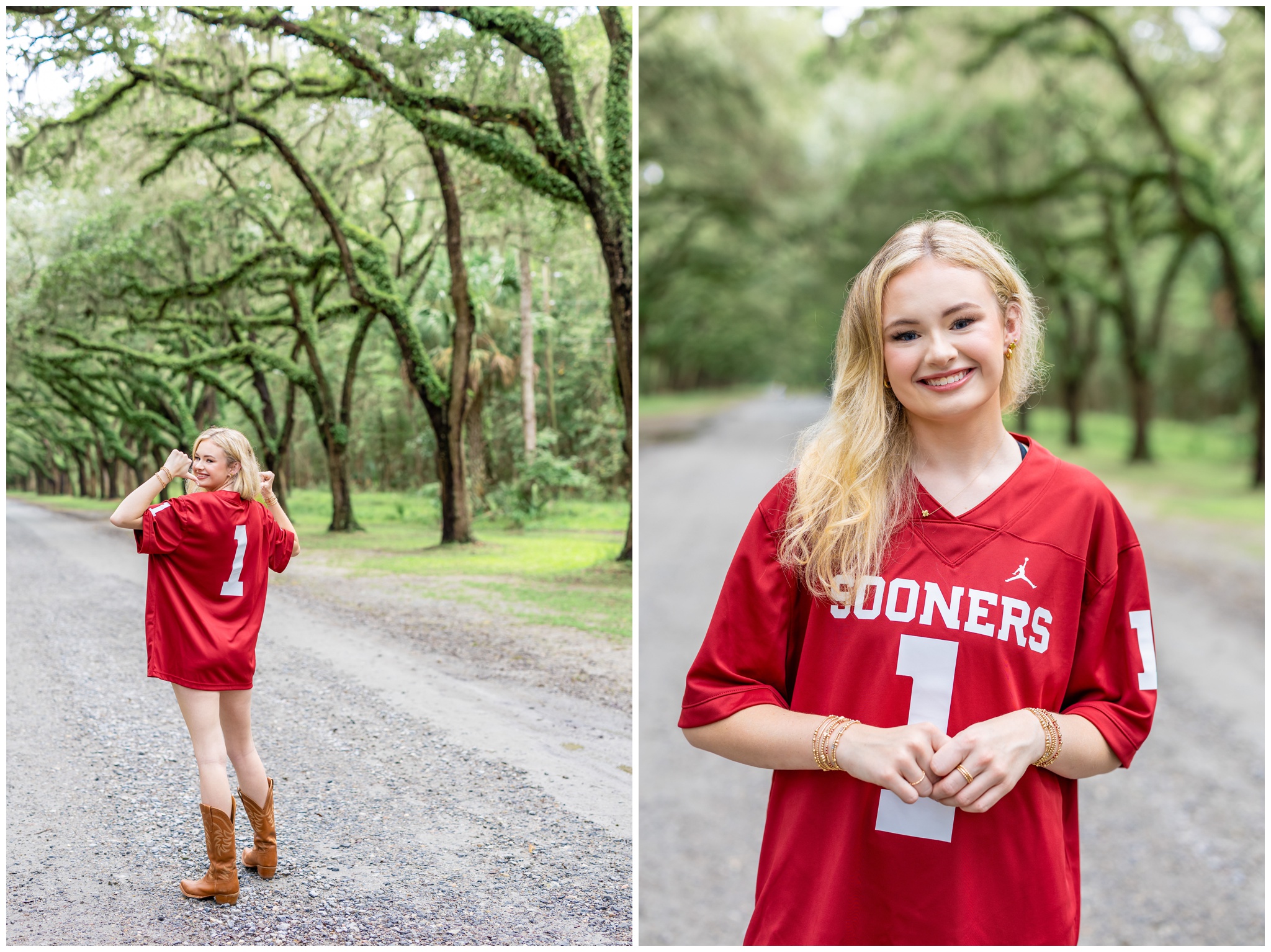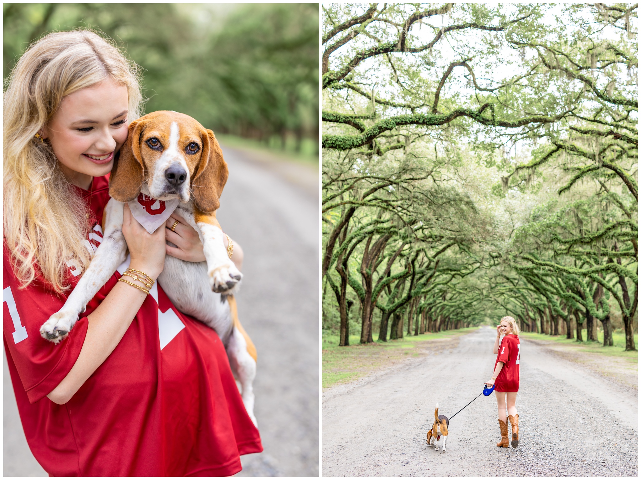 An absolutely BEAUTIFUL Savannah, Georgia senior session with Miss Claire to kick off the fall season! We had an ideal scenario for the start of Claire’s senior session: overcast skies and cooler temps (!!!) – finally starting to feel like the fall in the low-country! Claire wanted to capture the gorgeous, infamous trees at Wormsloe and the stunning water views on Bluff Drive. These both just so happen to be some of my favorite locations in SAV! She wanted to highlight her acceptance into Oklahoma (!!!) and include her sweet pup, Wrigley. We started the session with both and it was SO SWEET!
